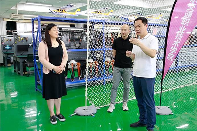 首先,十三陵管理中心一行人在罗春红副院长的陪同下,先后参观了学院数字媒体艺术设计、无人机、城市轨道交通等专业实训室,了解学院各专业建设、实训场地、设备设施、教学培训等相关情况。