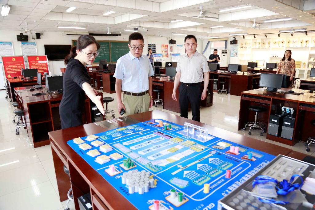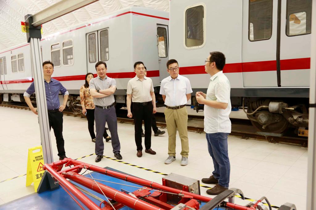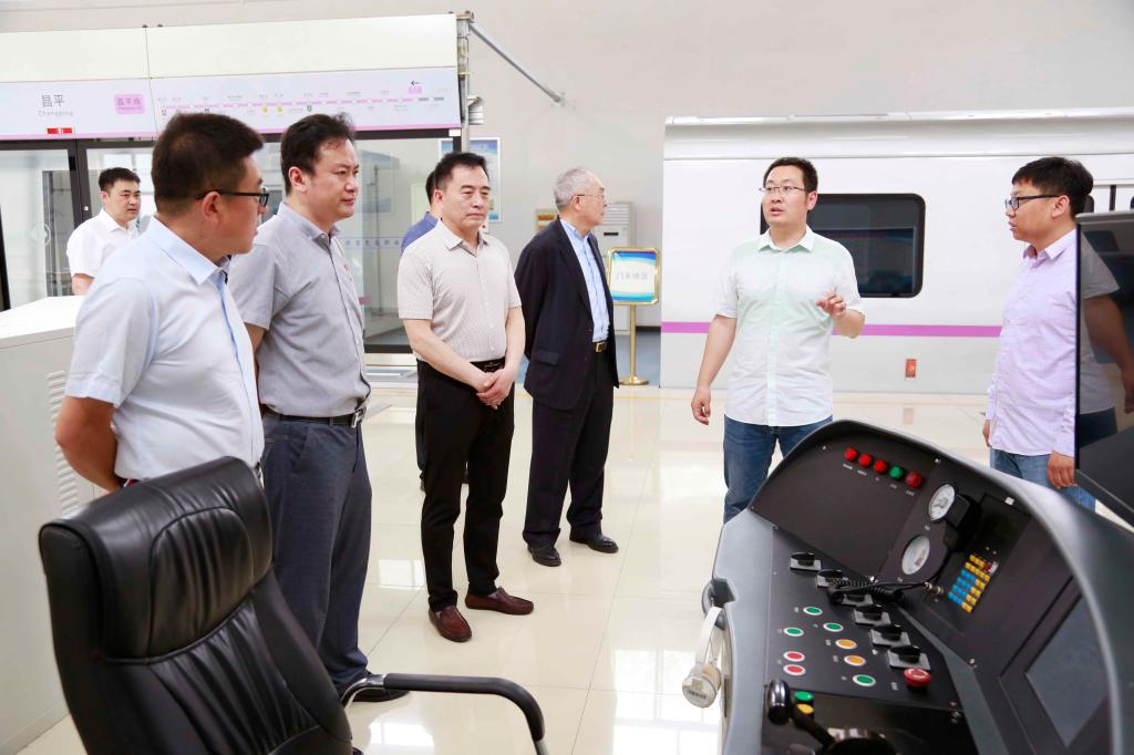 来访的一行人参观了学院数字艺术实训室、京张高铁沙盘实训室、工程造价信息化综合实训室、无人机系统工程师实训中心、城市轨道交通沙盘中心、轨道交通实训中心等实训基地,了解学院各专业建设、实训场地、设备设施、教学培训等情况。