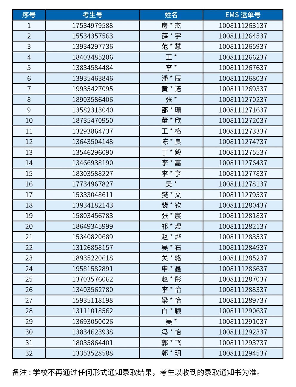 学校不再通过任何形式通知录取结果