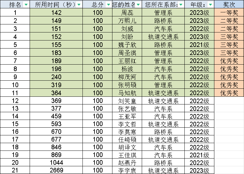 在同学们的共同努力下,我院有21名同学在初赛中获得满分,90-100分的同学有56人。