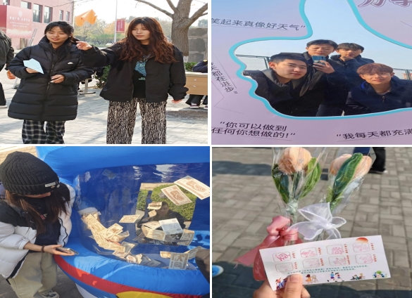 “心稳手巧”的活动中,同学们投掷沙包许愿,一个个“圆孔”蕴含着对未来的憧憬,慰藉心灵;在“念念不忘”的活动中,同学们牢记心中词汇,了解短时记忆的工作机制,加深了对心理学中“记忆”的理解;“能量传递”的活动中,同学们使用碎纸机粉碎坏情绪,通过能量箱获取能量,写下生活中的“小确幸”,使他们感受到生活的温暖;“等风来不如随风去”的活动中,同学们将满满的希望或是一句对自己有帮助的话语精心叠成纸飞机,在道具“草坪”上放飞自己的希望,让美好的憧憬启航;“心光留影处”夸夸镜打卡拍照,老师和同学们在条幅上写下名字,种下希望的种子,绽放生命绚烂之花,获得美好的回忆;心愿收获区,同学们通过活动盖章券参与“叮当猫抓钱机”抽奖,获得一份份暖心小礼物,是对自己勇敢前行、不懈努力的深情回馈,愿这一份份礼物能如璀璨的星光,照亮你的心田,为你带来无尽的喜悦和满满的幸福。