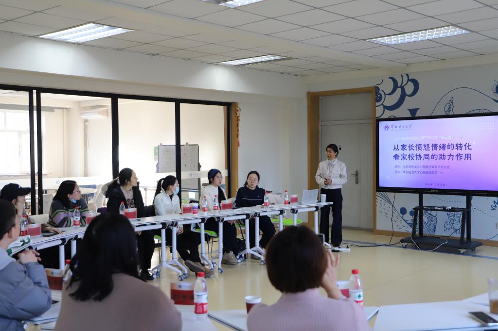 在第四期沙龙中,老师们就学业困难的现状、学业困难的成因以及应对方式进行了深入的分析与讨论,活动实效性强,得到了参会教师的一致好评。在第五期沙龙中,许玉萍结合实际案例分享了如何透过对家长愤怒情绪的转化达到家校协同、助力孩子成长的作用。参会教师分别分享了自己工作中的经验和体会,就“家校协同”“关爱自我”等议题进行了深入交流和讨论。