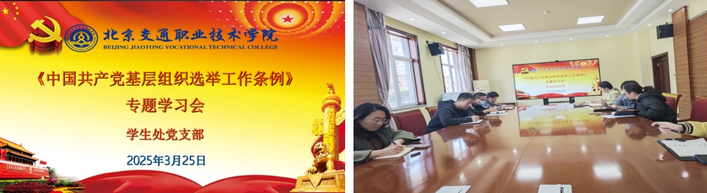 按照学院《关于做好2025年基层党支部换届选举工作实施方案》相关要求,2025年3月25日,学生处党支部在办公楼一层会议室开展主题党日活动,活动主题为“学深悟透《中国共产党基层组织选举工作条例》——锤炼坚强党性,严守换届纪律”。