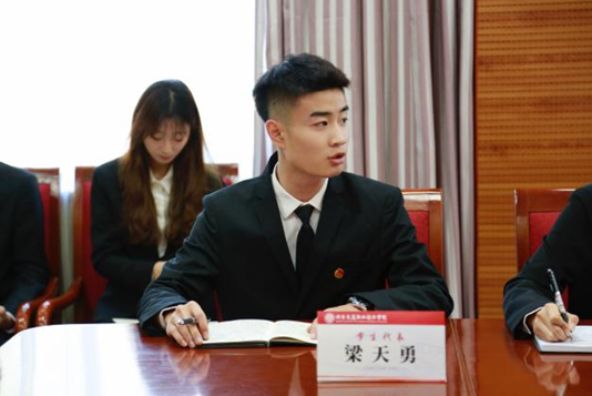会上,团委书记代宏博强调,学生干部要牢记习近平总书记“做青年友,不做青年‘官’,多为青年计,少为自己谋”的嘱托,并明确了团学干部的地位、职能及要求。随后,就“如何加强团学干部自身建设”和“如何深化团学工作与学院整体发展规划相融合”两个方面,提出重要战略部署。