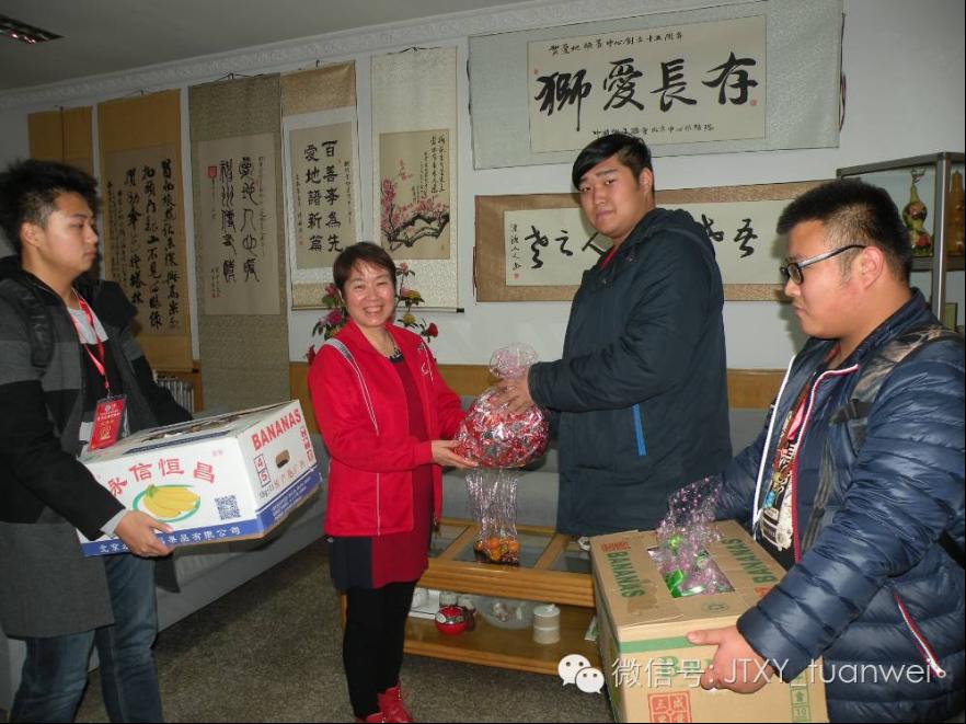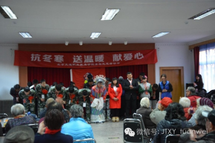 当日下午,学院共计56位志愿者在青年志愿者协会会长李财顺的带领下来到北京市昌平区爱地敬老院,学院学生处长刘兴鹤、团委老师颜金海、院学生会主席于文东也积极参加了本次志愿活动。大家乘车到达敬老院后,分工协作,有的向老人们嘘寒问暖,了解老人的日常生活及健康状况;有的帮老人们打扫院内清洁,整理内务;同时准备了水果、糕点、横幅,并将礼品包装送给老人。为老人们送来了真挚的祝福,在冬季送来了温暖,在新年到来之前带来了欢乐。