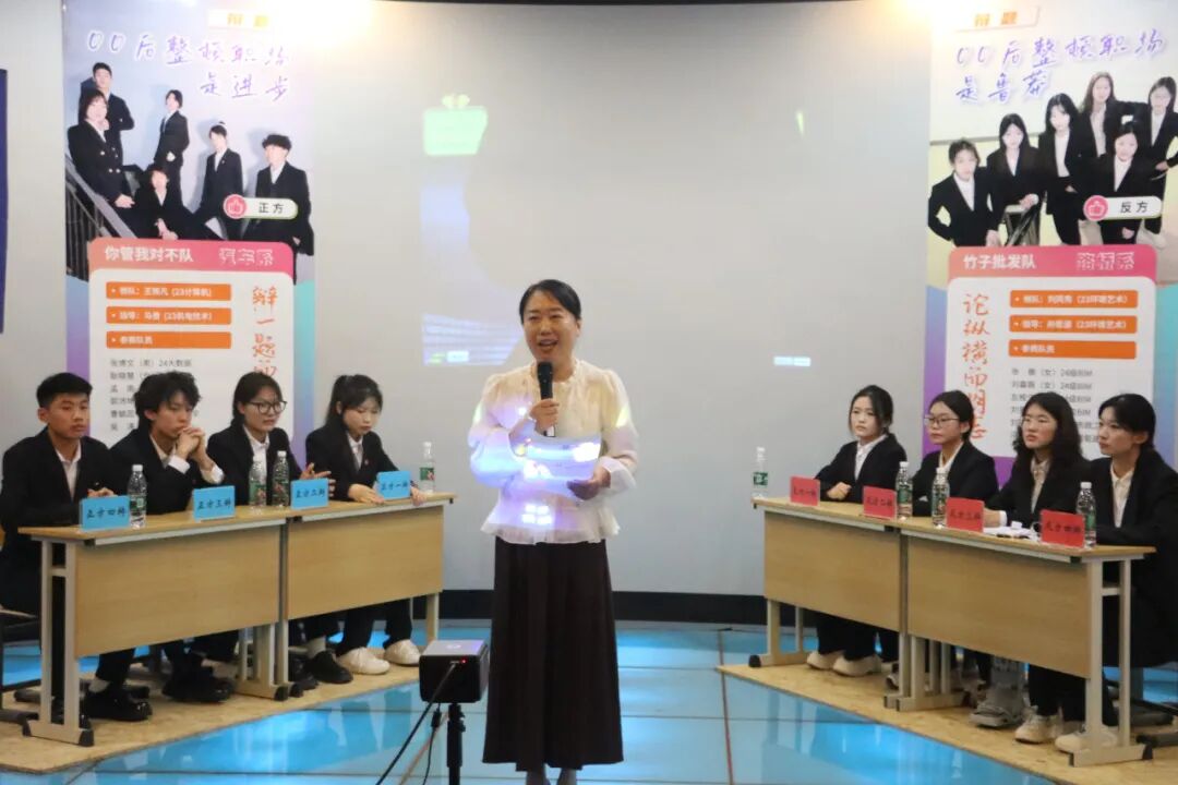 赛后,评委代表李孙静老师对本场比赛进行了专业点评:“这场辩论展现了同学们对社会现象的深度思考。00后整顿职场的本质,是青年价值观与传统职场文化的碰撞,关键在于如何平衡个性表达与规则尊重。”她肯定了辩手们“以理服人、以情动人”的思辨素养,鼓励学子在未来继续保持独立思考的精神。