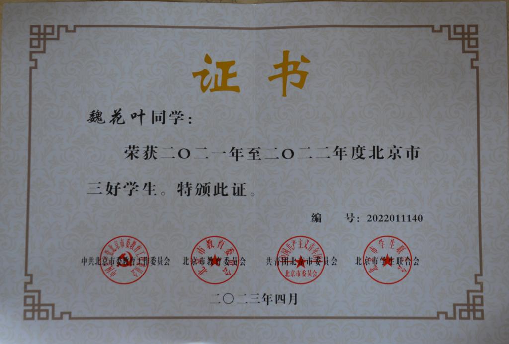 经过学院评选推荐,北京市最终评选决定,我院共有4个先进组织和个人荣获本次表彰,其中汽车系21级机电一体化班荣获“北京市先进班集体”荣誉称号,管理系王浩恩同学获得“北京市三好学生”荣誉称号,汽车系魏花叶同学获得“北京市三好学生”荣誉称号,路桥系相益庭坚同学获得“北京市优秀学生干部”荣誉称号。