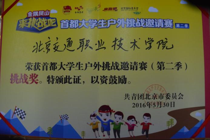 我院参加第二季“来挑战吧”首都大学生户外挑战邀请赛,在增强了我院与首都各院校之间的交流和团结凝聚力,同时展现了我院良好的竞技精神和青春文明风貌。