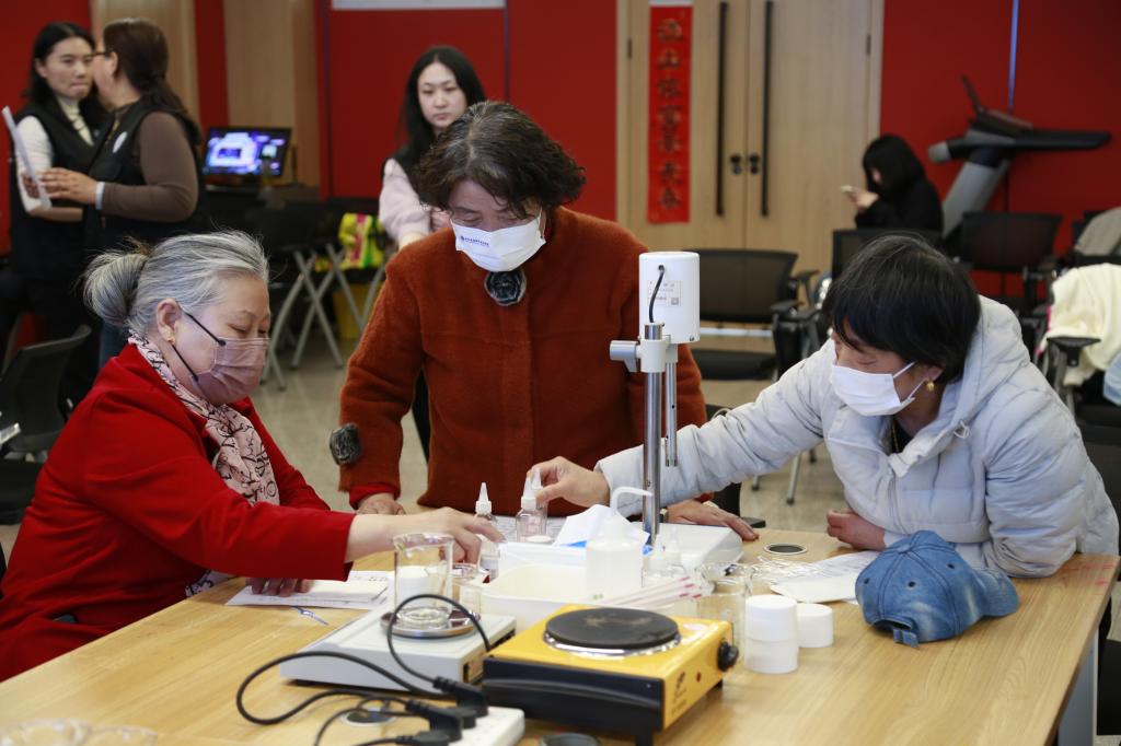 活动现场,高润老师以通俗易懂的语言,向居民们讲解了护手霜的基本成分、制作原理及日常护肤的重要性。居民们踊跃参与,现场热闹非凡。在管理系教师团队和志愿者的热心指导下,大家从了解化妆品的基本知识开始,亲手调配各种美妙的原料,在欢声笑语中创造出属于自己的护肤品——护手霜。每一个环节都充满了探索的乐趣与创作的成就感,居民们的脸上洋溢着快乐的笑容。