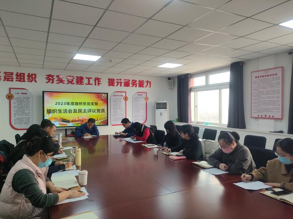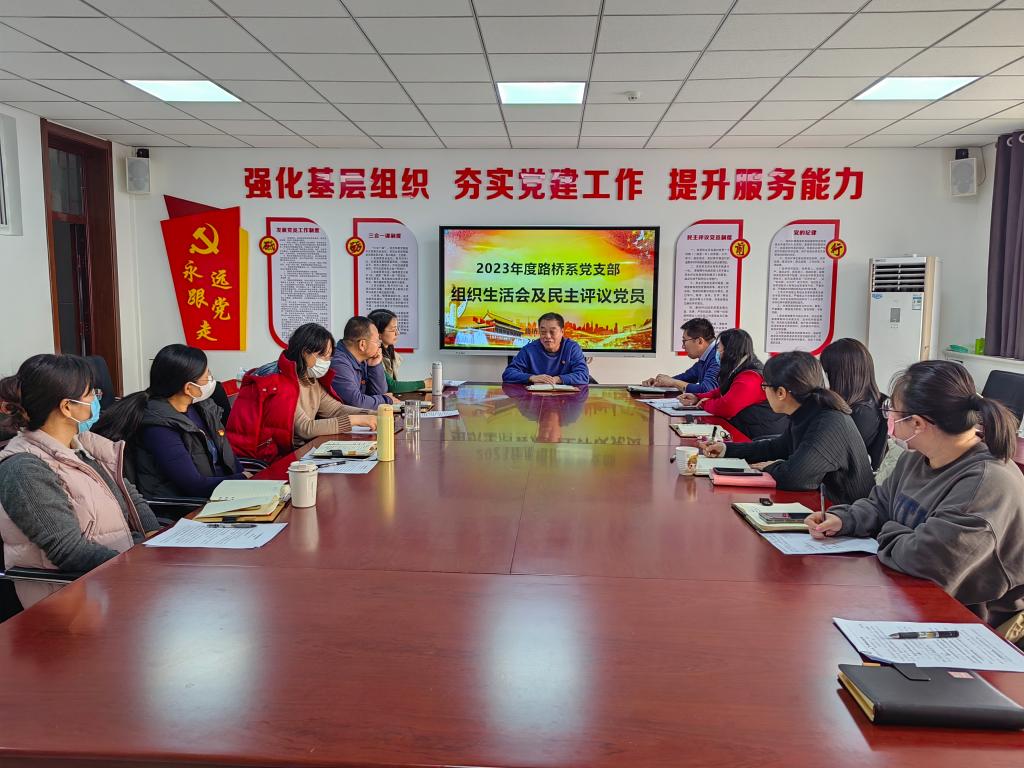 按照学院党委《关于召开2023年度基层党组织组织生活会和开展民主评议党员的通知》要求,路桥系党支部于2024年1月18日下午召开2023年度组织生活会和开展民主评议党员。路桥系党支部全体党员参加会议,学院党委委员、工会主席高波同志出席会议,路桥系党支部宣传委员杨硕主持会议。
