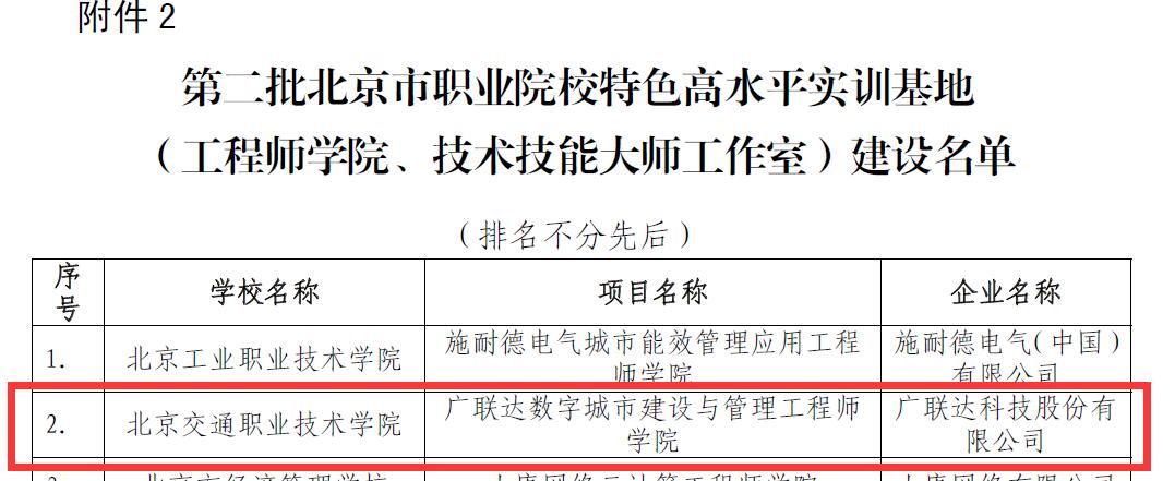 喜报!我院“广联达数字城市建设与管理工程师学院”项目成功入选北京市职业院校特色高水平实训基地建设名单!