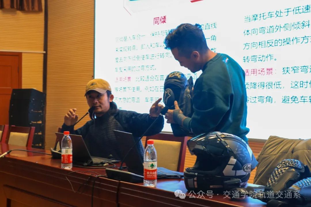 在互动交流环节,同学们积极提问,梁杨老师耐心解答,进一步加深了同学们对摩托车安全驾驶的理解。随后,梁杨老师详细介绍了金卡纳的起源、发展以及比赛规则。他以精彩的描述和生动的视频,让同学们对这项充满挑战与魅力的摩托车竞技运动有了更全面的认识。金卡纳不仅是一项竞技运动,更是对驾驶者技术和反应能力的考验。