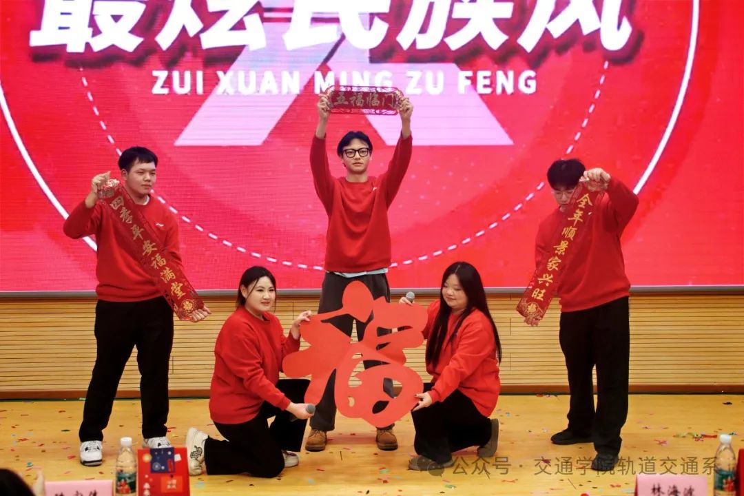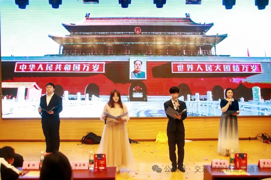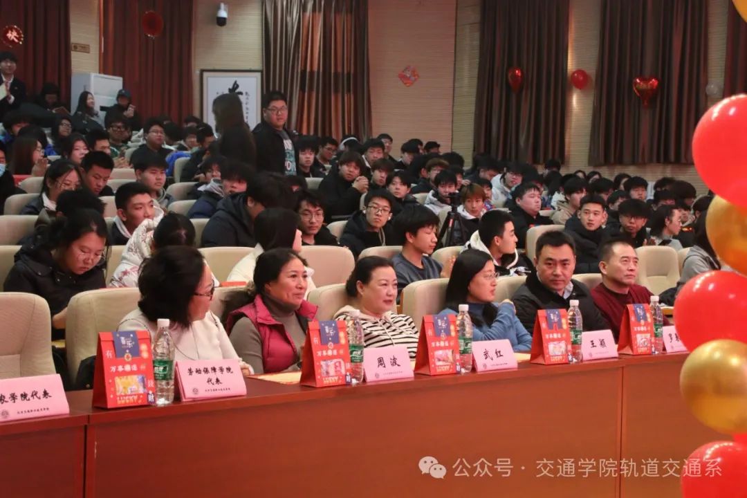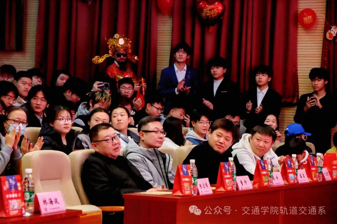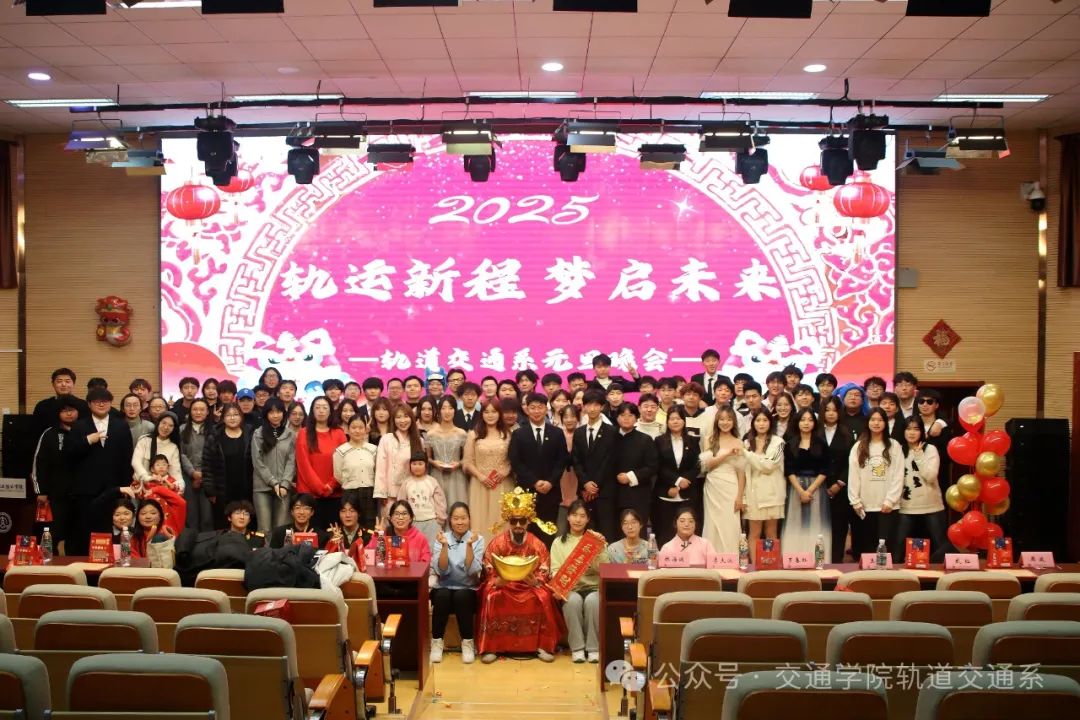 轨道交通系于2025年1月2日15:00在教二楼报告厅成功举办了“岁末轨道暖聚首,元旦欢歌启新程”轨道交通系庆元旦·迎新年联欢晚会。本次晚会融入建国 75 周年、学院办学 40 周年成果展以及港澳回归 25 周年等重要元素,为观众带来了一场视听盛宴的同时,也引发了强烈的情感共鸣。同学们以青春的活力与热情,开启了新年的崭新篇章。学院领导以及师生代表共同沉浸在这场辞旧迎新的汇演中,展望未来的美好。