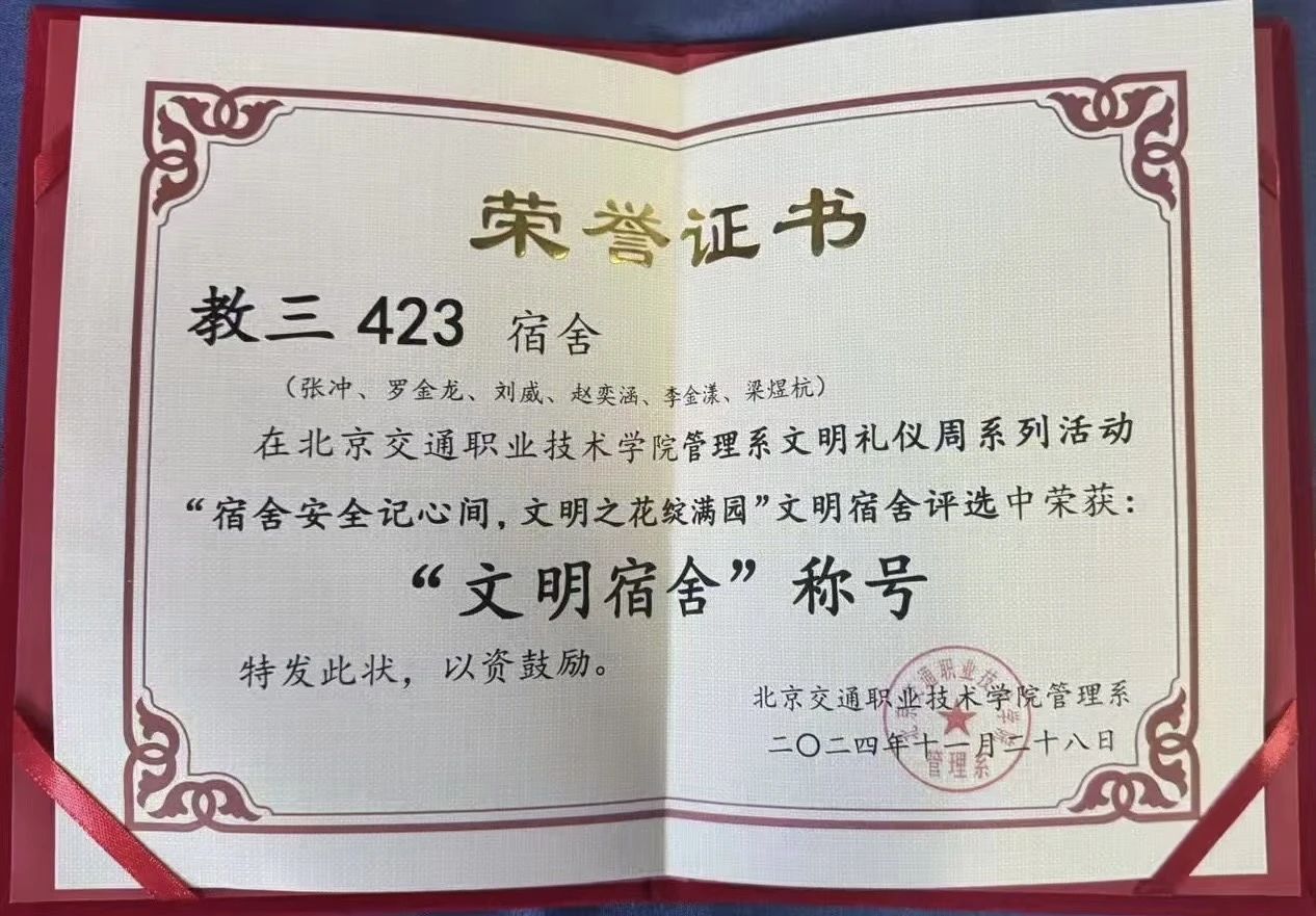 经过多轮评选,最终荣获管理系“文明宿舍”称号的为教三423宿舍、学二312宿舍