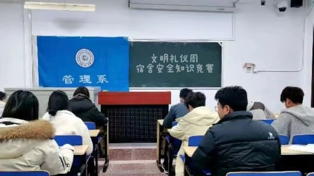 为增强大家的宿舍文明安全意识,管理系特举办“宿舍文明安全主题知识竞赛”。此次活动旨在通过知识竞赛的形式,提升学生宿舍安全与文明意识。通过竞赛,促使学生深入了解宿舍安全规则和文明规范,增强自我保护能力,减少安全事故。同时,鼓励文明行为,营造和谐宿舍氛围,促进校园文明建设,培养良好生活习惯。