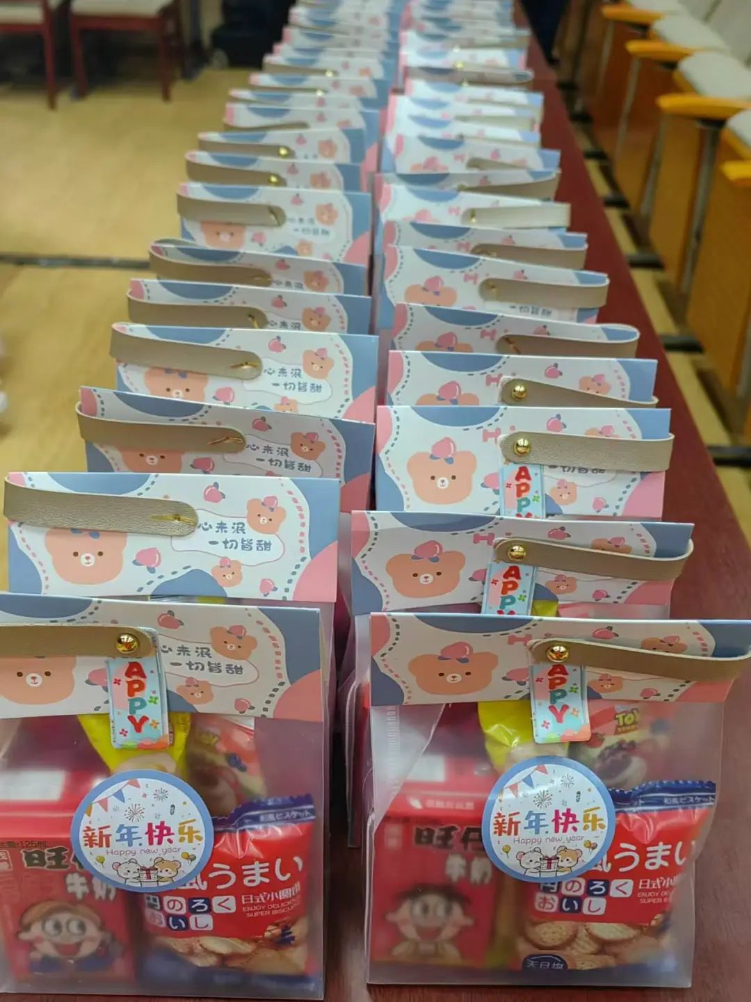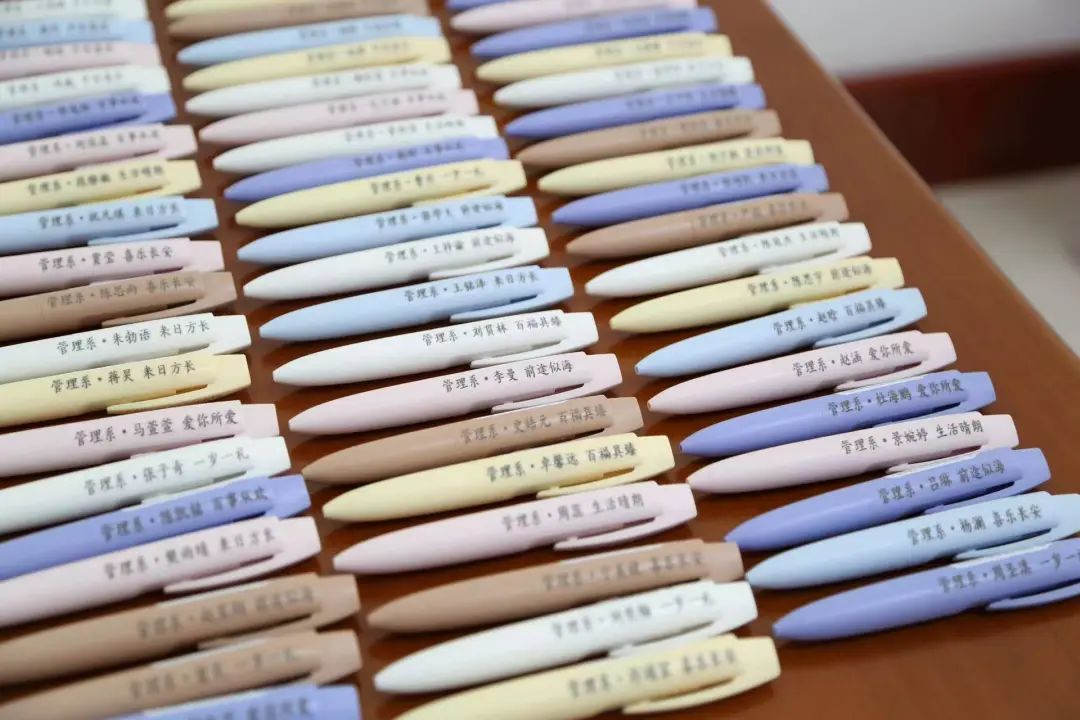 管理系为元旦联欢会精心筹备,不仅挑选了丰富多样的零食礼包,还为同学们准备了特别定制的笔,笔上印着每位同学的名字,此外还有互动小玩具。在前期准备过程中,同学们认真排练节目,老师们仔细监督彩排,大家齐心协力,都希望在联欢会上呈现出最佳的节目效果,共同度过一个欢乐难忘的元旦佳节。