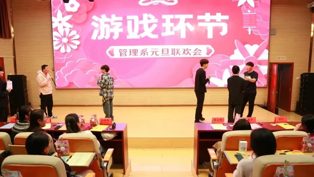 精彩的表演穿插着游戏与抽奖环节,使得现场气氛活跃,观众们积极参与,笑声和掌声此起彼伏。抽奖环节更是将联欢会推向了高潮,幸运儿们激动地走上台前,领取了精美的奖品。整个联欢会不仅展示了管理系师生的多才多艺,也加深了师生之间的交流与友谊。
