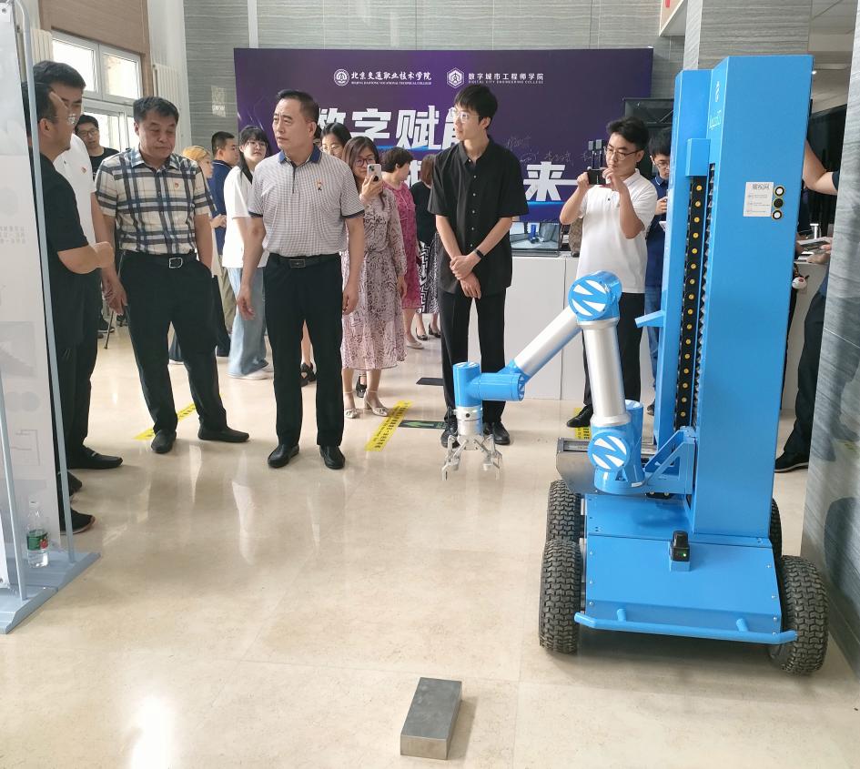 该主题展数字赋能 城就未来是学院建设北京市特色高水平实训基地建设重要活动,是学院职业教育产教融合推进工作的重要组成部分。主题活动展出了数字城市工程师学院从学生培养、校企合作、专业建设、教师成长、对外服务五个方面近两年来的成果,同时展出我院数字城市建设专业群的核心技能、智能建造技术的最新设备和数字艺术专业群的学生成果。通过展示学生创作的艺术作品和智能建造的机器人、智能测量、智慧工地设备等活动,激发了在校生学习职业技能兴趣,提高了学生对专业发展认知度。